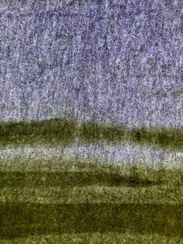 Luxuriously soft, lightweight, slightly felted cashmere stole in green melding into blue with a soft thread fringe. Size is 50″ x 55.” Made in Italy.