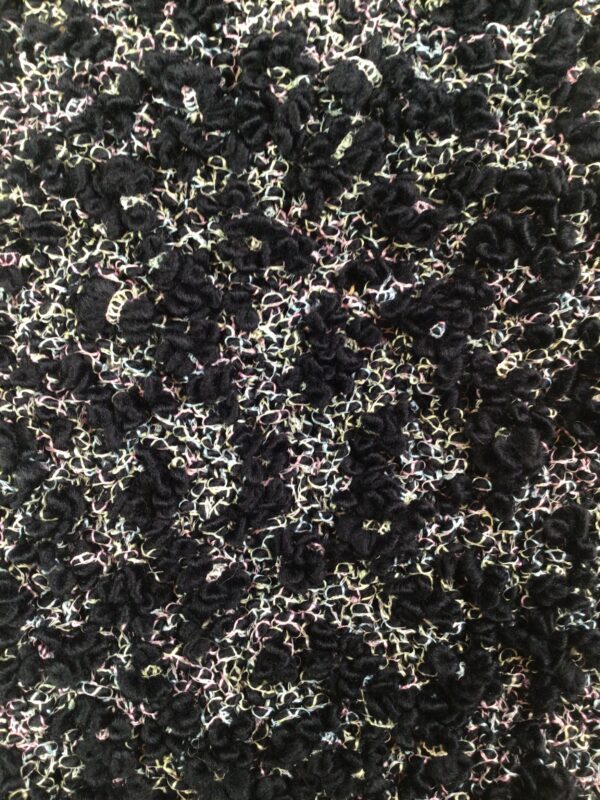 Soft, and warm, hand knit, textured scarf by Kathleen Crawford in a squiggly pattern with black and white. Acrylic and nylon yarn. Hand wash and lay flat to dry. Size (#21-25) 6.5″ W x 56″ L. Hand made in West Virginia.