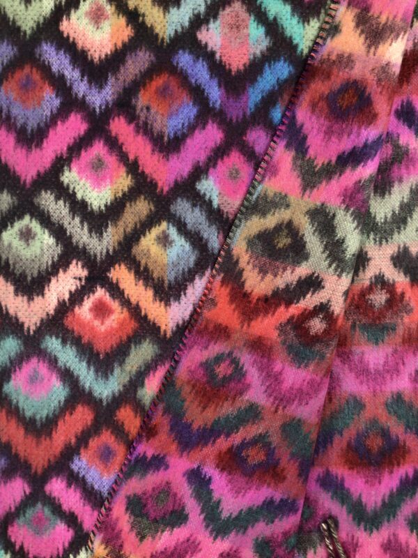 Cashmink is an exceptionally soft, warm, gentle on the skin acrylic fiber that can be machine washed and hung to dry. This scarf has a 3.5 inch twisted fringe on each end. The size is 14″W x 72″ L.  Made in Germany.