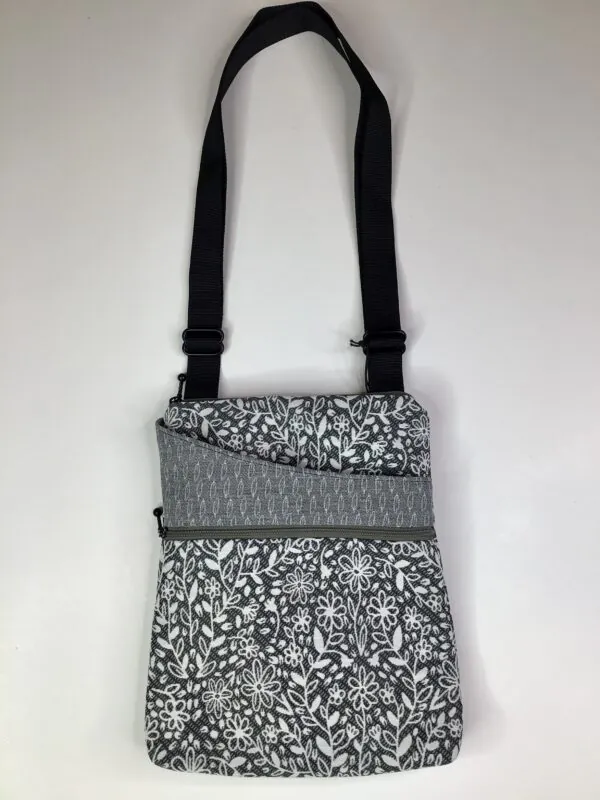 Great small organizer, the Pocket Bag has a top zipper, the outside has a curved opening slide-in pocket, and a zip pocket, inside is fully lined in a gray water-resistant fabric with an open back wall pocket. Can be worn as either a crossbody or shoulder bag with an adjustable strap from 12″- 24″. Measures: 8″ W x 10″ H x 1.5″ D. Made in Boulder, CO.